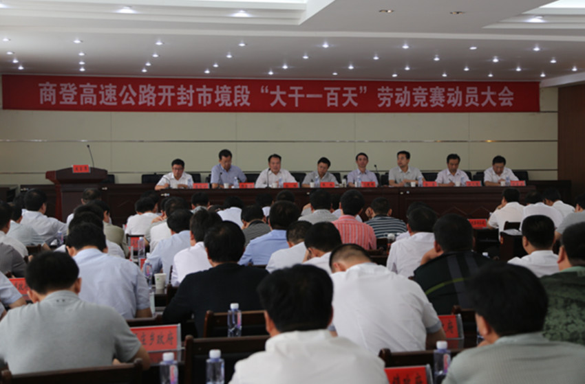 9月13日上午,商登高速公路开封市境段“大干一百天”劳动竞赛活动动员大会在通许县召开。开封市副市长张扬,市纪委副书记、监察局长徐强,集团副总经理代建伟出席会议。开封市指挥部及沿线杞县、通许、尉氏三县政府负责人参会并作表态发言。