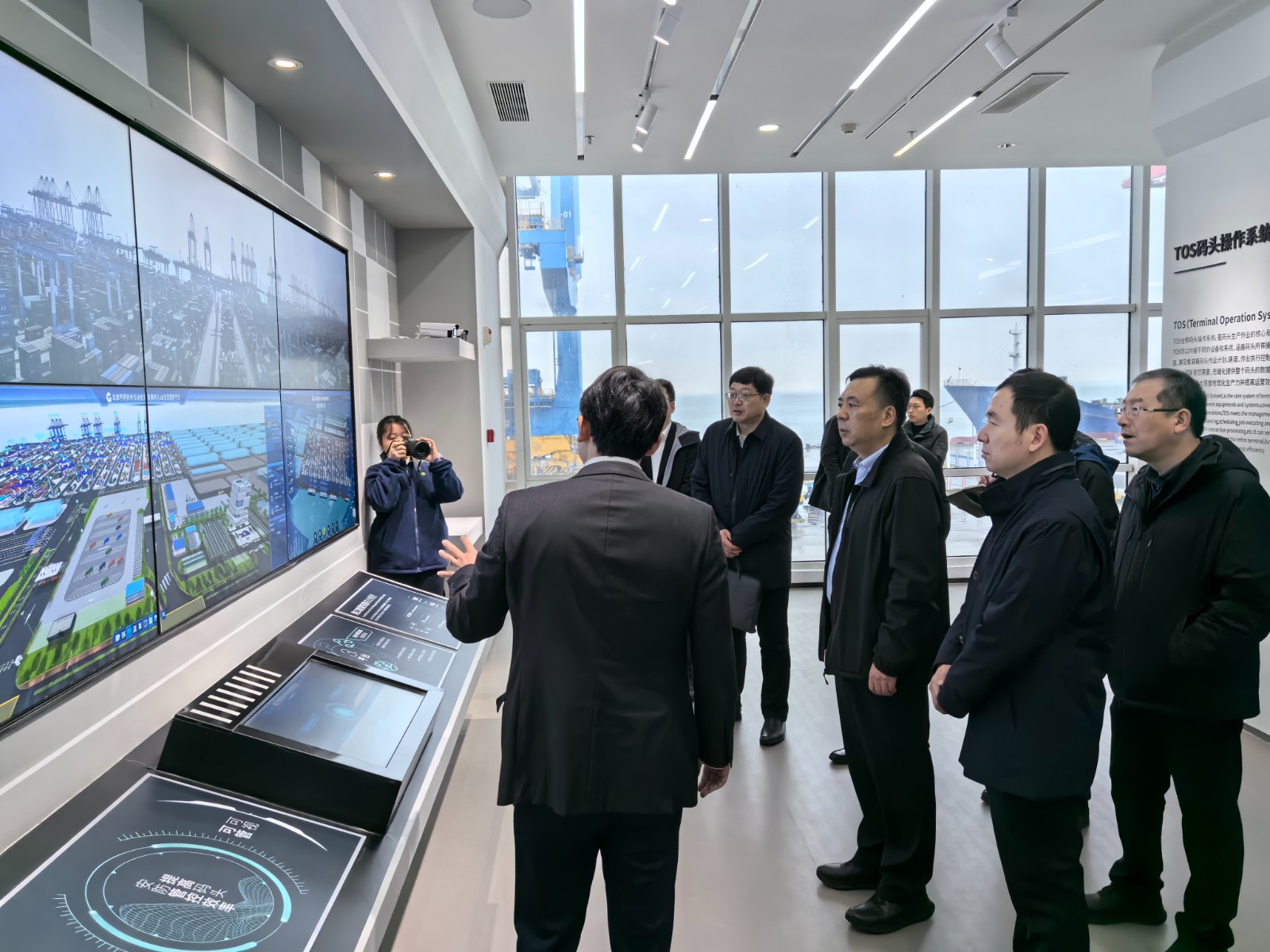 2月26日,集团党委书记、董事长付磊赴广西北部湾国际港务集团有限公司所属钦州码头有限公司考察调研,参观总调度指挥中心、自动化码头智慧创新中心和运营中心,现场调研钦州港自动化码头运营作业情况,详细了解码头智慧化建设、一线人员配置、运营管理、企业发展等情况,与广西北部湾国际港务集团有限公司主要负责人马正国等座谈交流。集团党委委员、副总经理吕小武、袁冻雷,工程建设管理中心、咨询集团、港航公司主要负责同志参加调研。