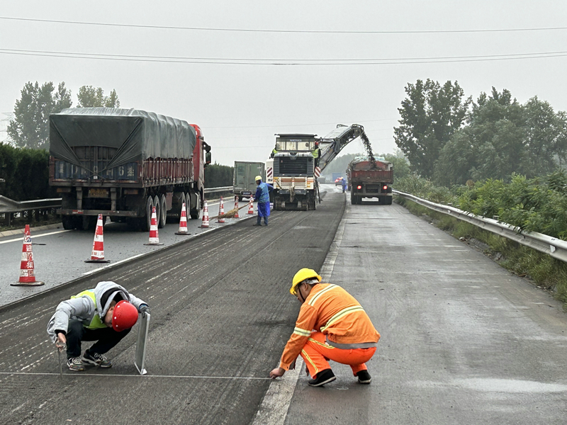 面对紧张的迎检节点,濮阳分公司养护管理及各养护工区人员主动取消休假,坚守养护一线。围绕国评指标体系,对受检路段开展“地毯式”排查与精细化处治,累计投入12个专业化施工作业班组,投入各类施工车辆60台、清扫车4台、防撞车4台、打桩车1台,铣刨机2台,摊铺机2台,压路机2台,并组织130余人次专业施工力量。
