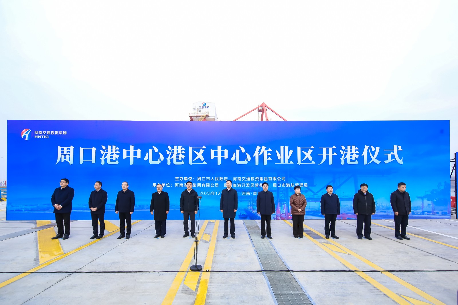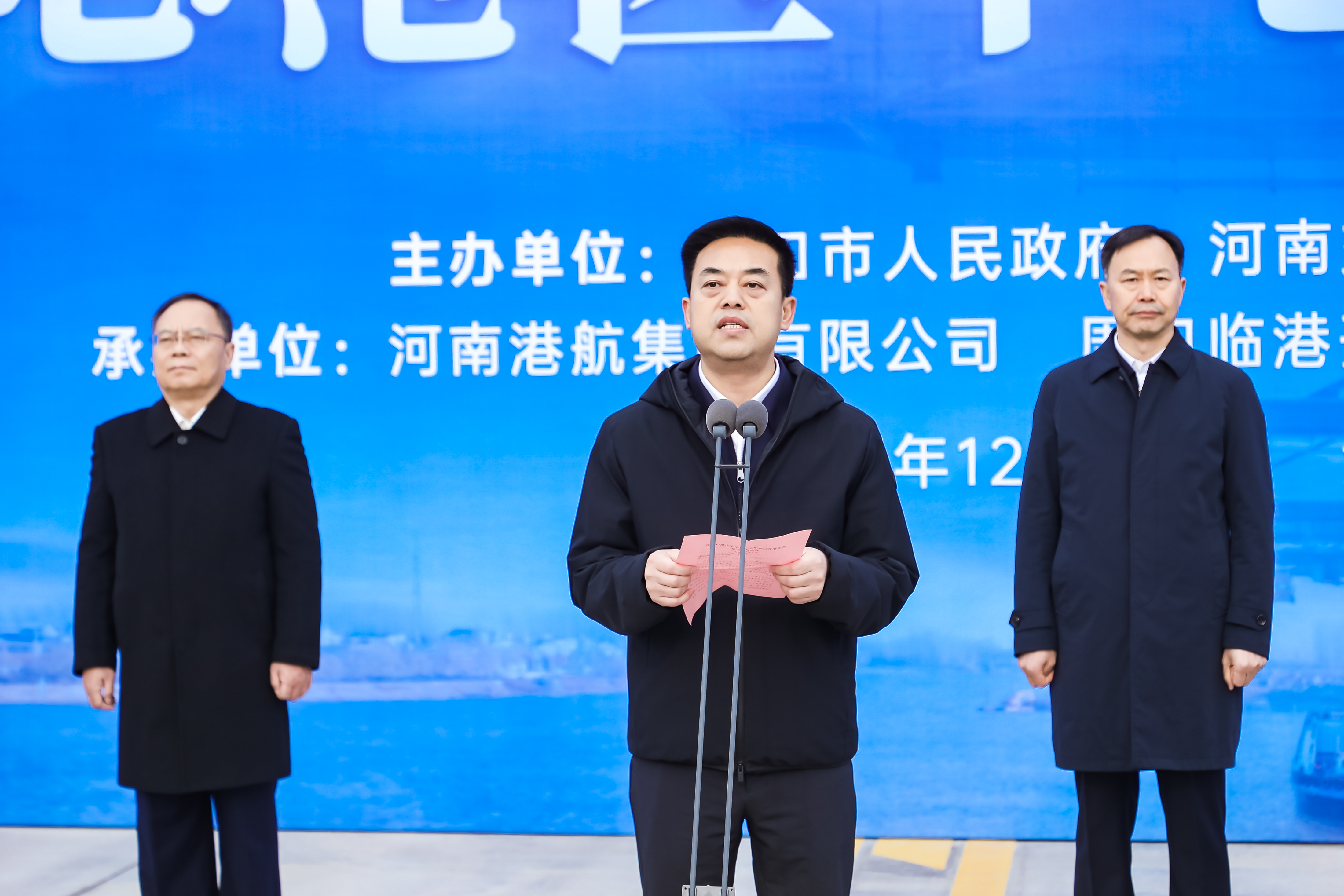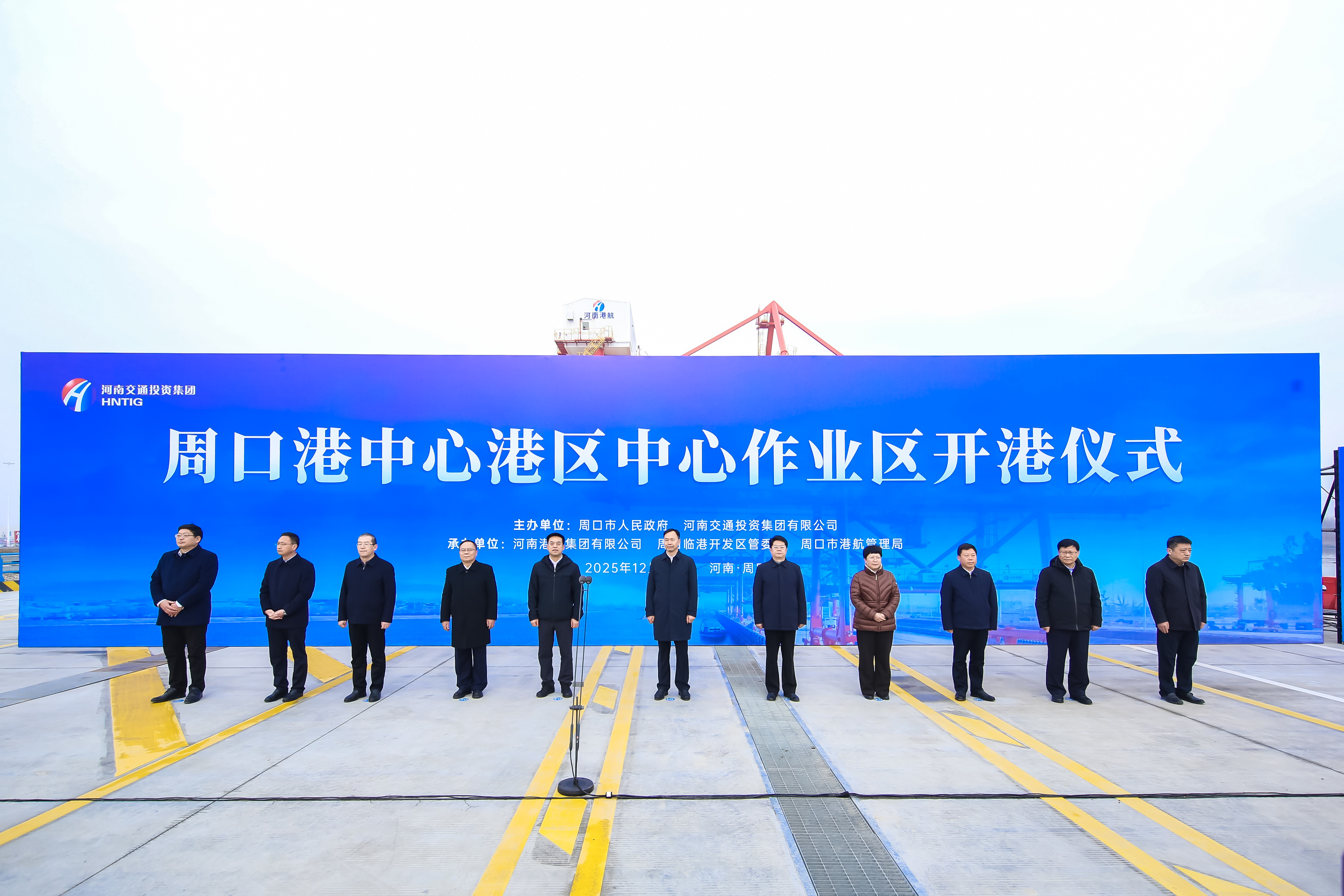 12月24日上午,河南内河航运发展迎来重要里程碑——周口港中心港区中心作业区正式开港运营。周口市委书记黄玉国,周口市市长詹鹏,省交通运输厅党组成员、副厅长崔梅,集团党委书记、董事长金雷,集团总经理、党委副书记、副董事长关健,周口市常务副市长王宏武,集团党委委员、副总经理吕小武、袁冻雷,周口市相关单位负责人,集团工程建设管理中心、港航集团及周口港务公司班子成员,集团所属相关单位负责同志出席开港仪式,超过170家合作企业的300余名代表参加。周口市常务副市长王宏武主持开港仪式。