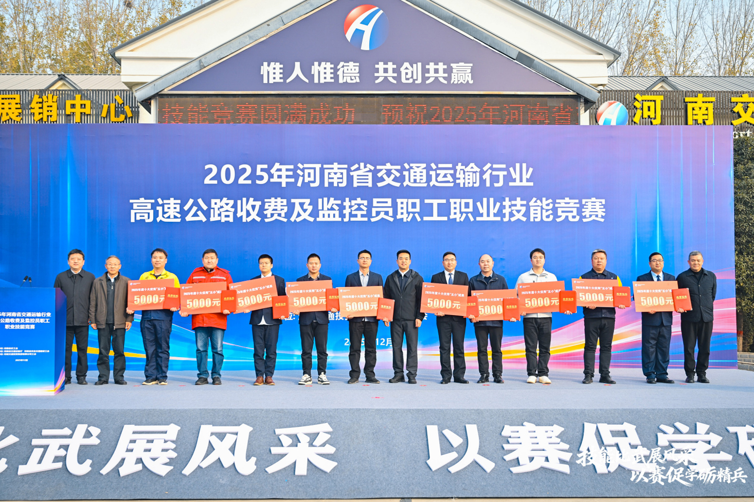 12月10日,由河南省总工会主办、河南交通投资集团承办的2025年河南省交通运输行业高速公路收费及监控员职工职业技能竞赛在郑州北服务区开赛。河南省总工会二级巡视员、组织部部长姜中田,河南省交通运输厅二级巡视员关毅,集团党委书记、董事长金雷,集团总经理、党委副书记、副董事长关健,集团党委委员、副总经理袁冻雷,河南省农业交通建设工会主席田建涛,集团工会工作部、运营管理中心、人力资源开发中心、服务区公司相关负责同志出席仪式。